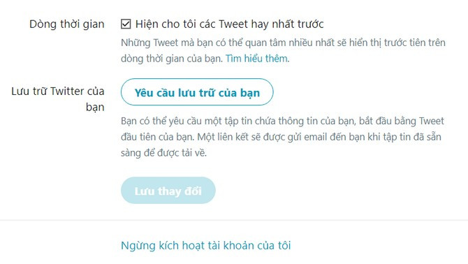 Click chọn Yêu cầu lưu trữ của bạn để nhận link tải về dữ liệu Twitter
