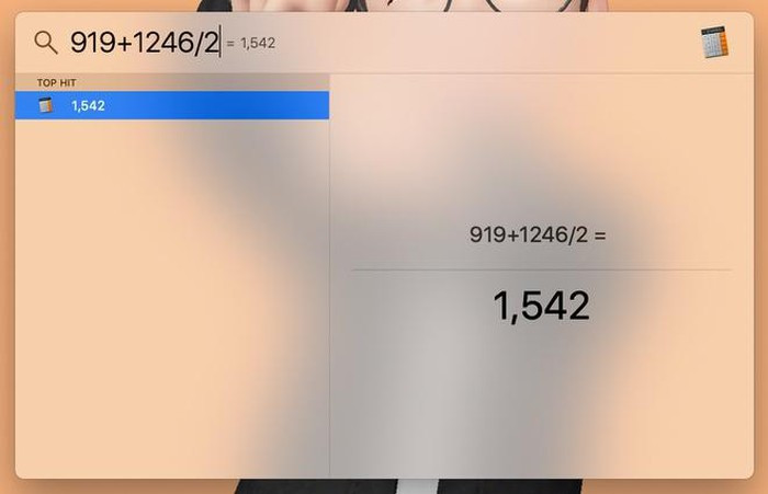 Ngoài việc tìm kiếm file trong máy, tính năng Spotlight còn cho phép bạn tính toán nhanh hoặc quy đổi tiền tệ. Để mở Spotlight, nhấp vào biểu tượng tìm kiếm trên thanh công cụ hoặc nhấn Command + Dấu cách. Trong ô tìm kiếm, nhập phép tính bất kỳ và kết quả sẽ hiện bên dưới. Để quy đổi tiền tệ, nhập số tiền và đơn vị tiền gốc, màn hình sẽ hiện kết quả quy đổi với các loại tiền phổ biến. Ảnh: Chụp màn hình.