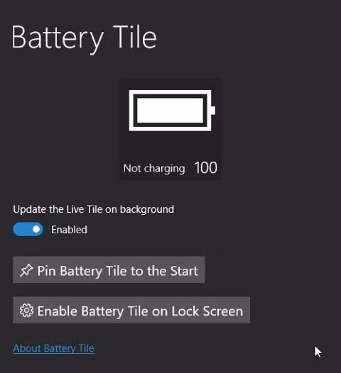 Tính năng này sẽ hiển thị thời lượng pin ngay trên menu Start và màn hình khóa. Trong không được thẩm mỹ cho lắm nhưng khá hữu ích.