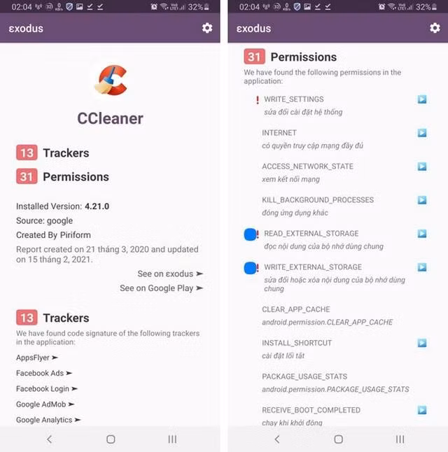 Từ kết quả do Exodus cung cấp, người dùng có thể gỡ bỏ ngay những ứng dụng khả nghi, tránh nguy cơ bị mất cắp dữ liệu trên smartphone.