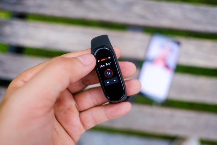 Điểm cộng cho Mi Band 4 là có thể điều khiển phát nhạc trên smartphone. Tôi có thể tăng, giảm âm lượng, chuyển bài hát bằng thiết bị này mà không cần động vào smartphone, dù đó là ứng dụng phát nhạc mặc định hay phần mềm bên thứ 3. Tính năng này trên Galaxy Fit không được trang bị.