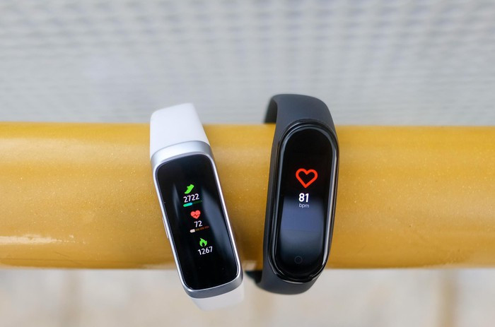 Galaxy Fit đang được bán tại Việt Nam với giá 2 triệu đồng, trong khi Mi Band 4 là 850.000 đồng. Galaxy Fit sở hữu thiết kế thời trang, phần mềm quản lý tối ưu tốt, trong khi Mi Band 4 có dung lượng pin khá lớn 135 mAh dùng được hơn một tuần, model này còn điều khiển phát nhạc trên smartphone.