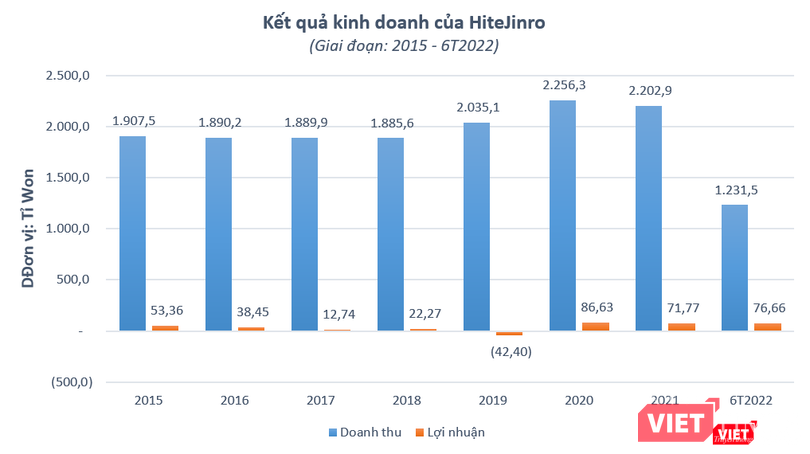 Lũy kế 6 tháng đầu năm 2022, doanh thu và lợi nhuận sau thuế của HiteJinro lần lượt đạt 1.231,5 tỉ won (tương đương 21.654 tỉ đồng) và 76,66 tỉ won (tương đương 1.348 tỉ đồng), tăng 11,9% và 45,1% so với cùng kỳ năm trước.