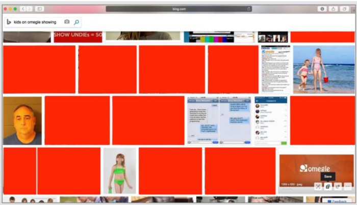 Các nhà nghiên cứu tìm từ khóa "trò chuyện trẻ em", Bing cho ra rất nhiều kết quả tìm kiếm có hình ảnh khiêu dâm của trẻ em. Nếu người dùng nhấp vào những hình ảnh đó, Bing hiển thị nhiều hơn hình ảnh về ấu dâm hơn trong mục Hình ảnh tương tự. Từ khóa "trò chuyện với trẻ em 13 tuổi" cũng cho ra kết quả là những nội dung khiêu dâm trẻ em.