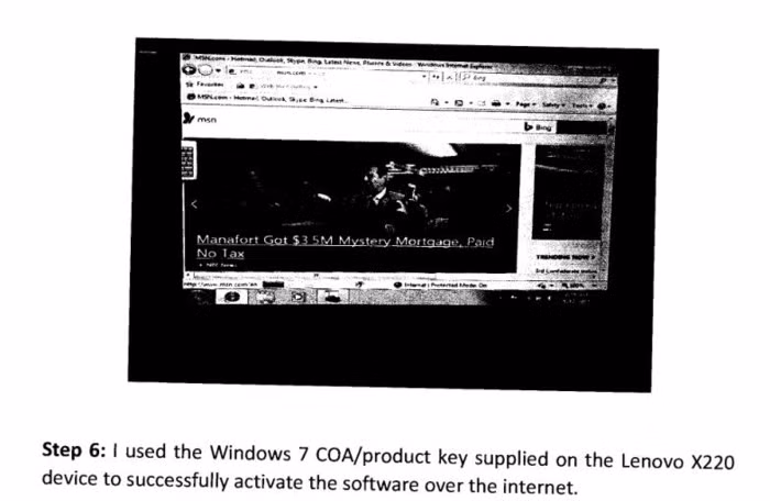 Từ các bản ghi của tòa, những chiếc đĩa bị thu giữ khi cài đặt xong cho ra một bản Windows bình thường, đã được kiểm chứng bởi nhiều bên