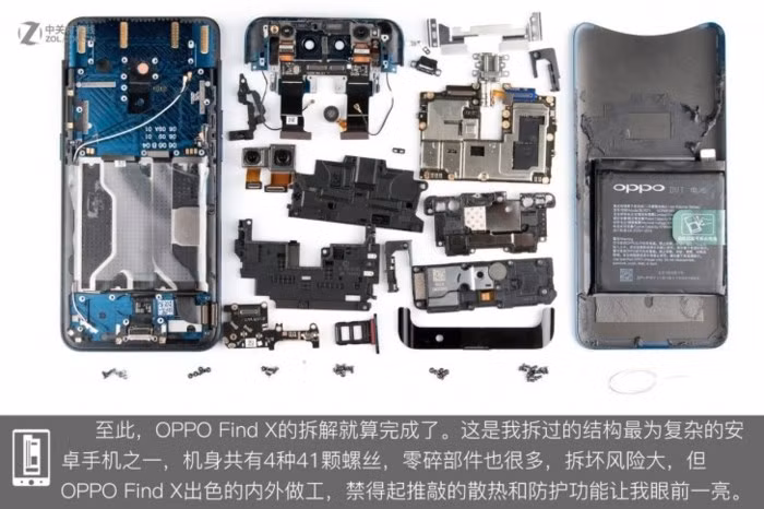 Dưới đây là toàn bộ các linh kiện bên trong Find X sau "ca mổ":