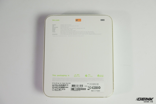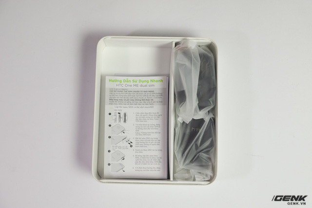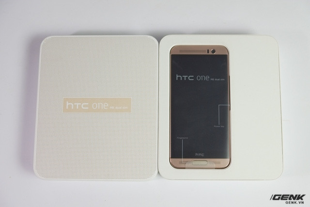 Hộp của HTC One ME không khác biệt so với các máy HTC trước đây: Vuông vức, đơn giản và có các họa tiết sần ở trên mặt.