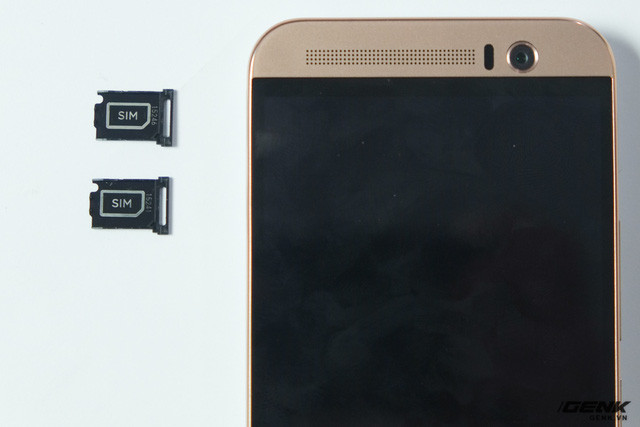One ME không sử dụng một khay SIM lớn mà tách ra làm hai khay nhựa nhỏ. Có lẽ do HTC lo sợ người dùng sẽ dễ dàng đánh mất hoặc làm gẫy, hãng đã tặng kèm hai khay thay thế trong hộp.