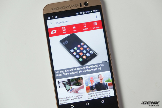 Do có viền màn hình dày, cộng thêm hệ thống loa BoomSound, One ME cho cảm giác trên tay không khác gì các máy 5.5 inch, mặc dù màn hình chỉ 5.2 inch