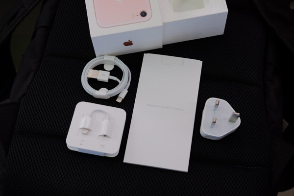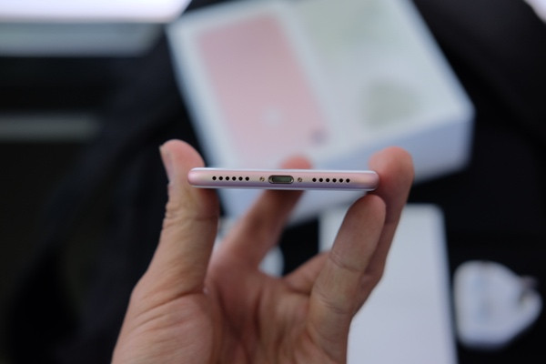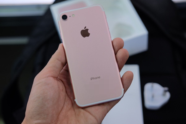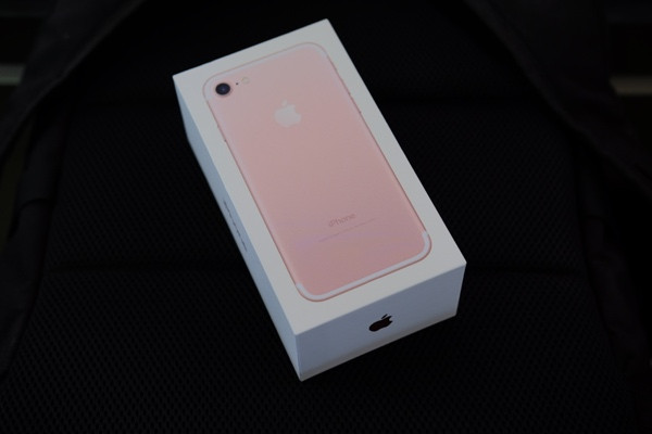 Dưới đây là hình ảnh chiếc iPhone 7 phiên bản thương mại sẽ chính thức được bán ra cho khách hàng vào ngày 16/9. iPhone 7 này là bản màu hồng, dung lượng bộ nhớ 256GB, nhập từ Hồng Kông.