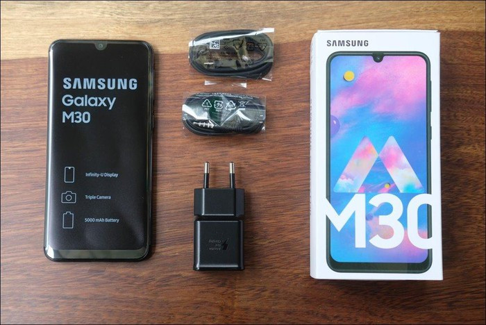 Galaxy M30 vẫn có thiết kế tương đối giống người anh M20 được ra mắt hồi đầu năm 2019. Thân máy thiết kế nguyên khối cùng phần viền bo cong giúp việc sử dụng máy thoải mái, chắc chắn không trơn tay.