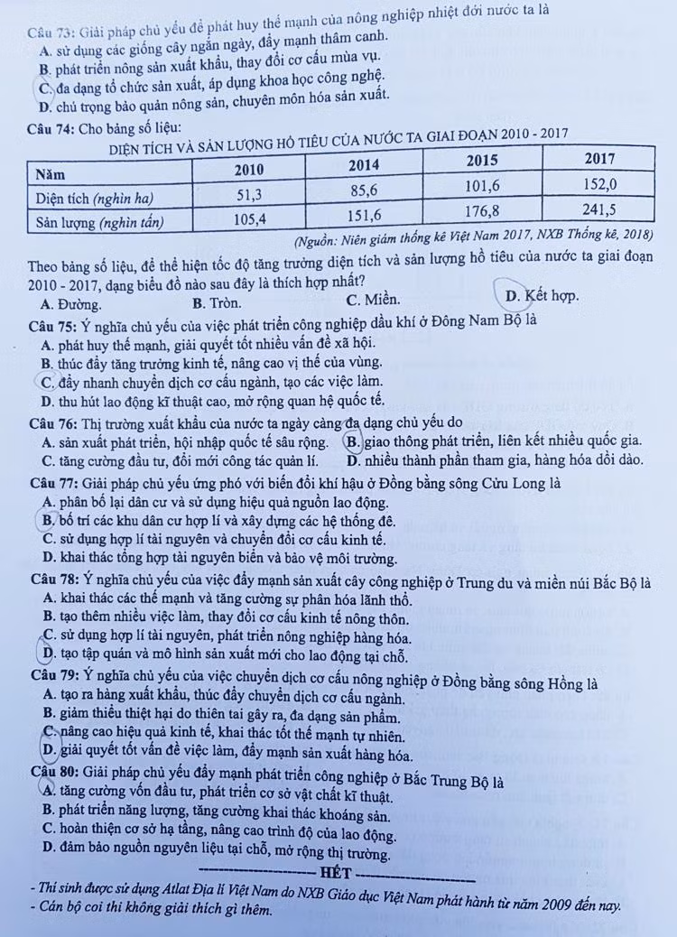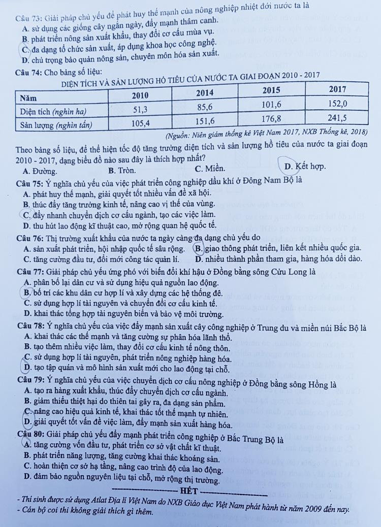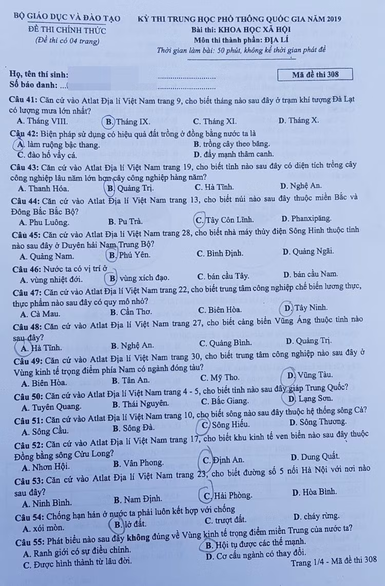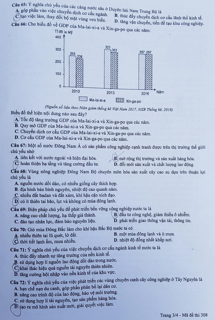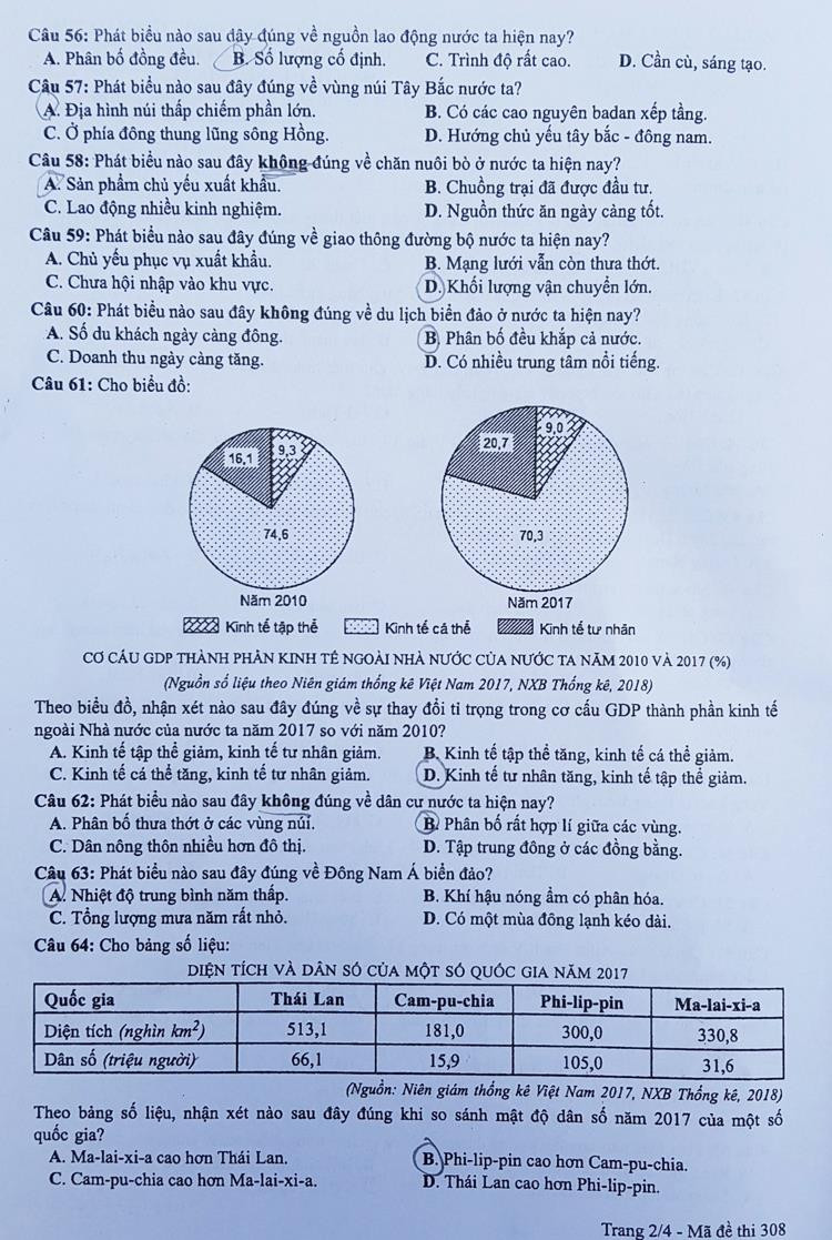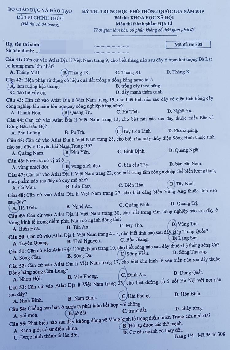 Đáp án môn Địa lí kì thi THPT Quốc gia 2019 mã đề 308 theo gợi ý của tuyensinh247