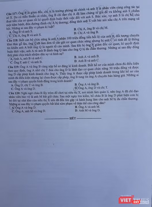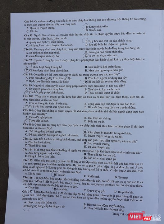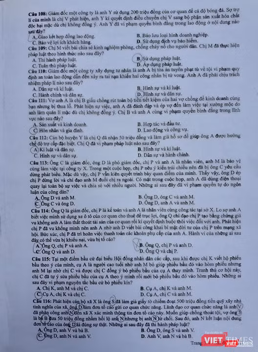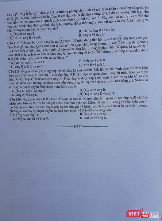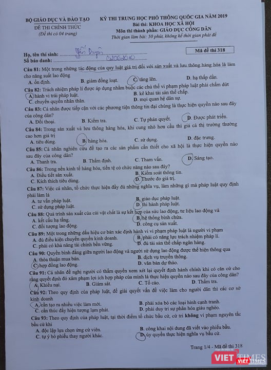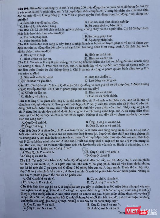 Mời độc giả, phụ huynh và thí sinh theo dõi đề thi và đáp án tương ứng của tổ hợp các môn Khoa học Xã hội sáng nay.