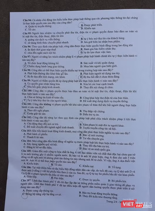 Đề thi môn Giáo dục công dân: