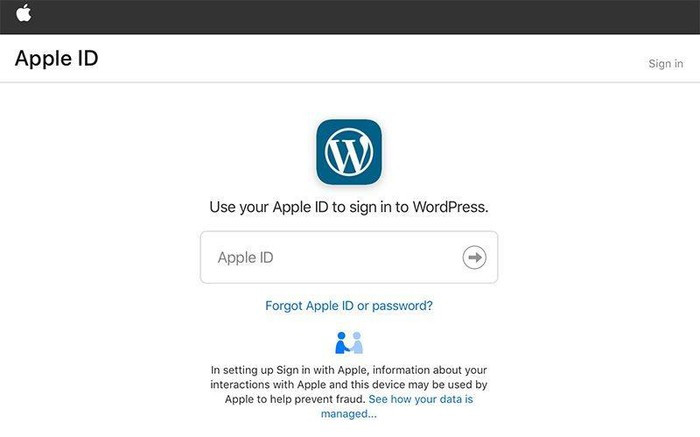 Khi dùng Sign in with Apple trên web, website sẽ yêu cầu bạn khai báo Apple ID để đăng nhập. Tuy nhiên, toàn bộ quá trình xác thực sẽ được xử lý trên một cửa sổ riêng biệt và thực hiện qua Apple để website không thấy được Apple ID của bạn.
