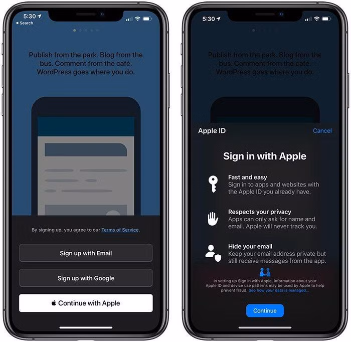Với Sign in with Apple, nhà phát triển và website không có cách nào thu thập thông tin từ người dùng ngoại trừ cái tên và địa chỉ email.