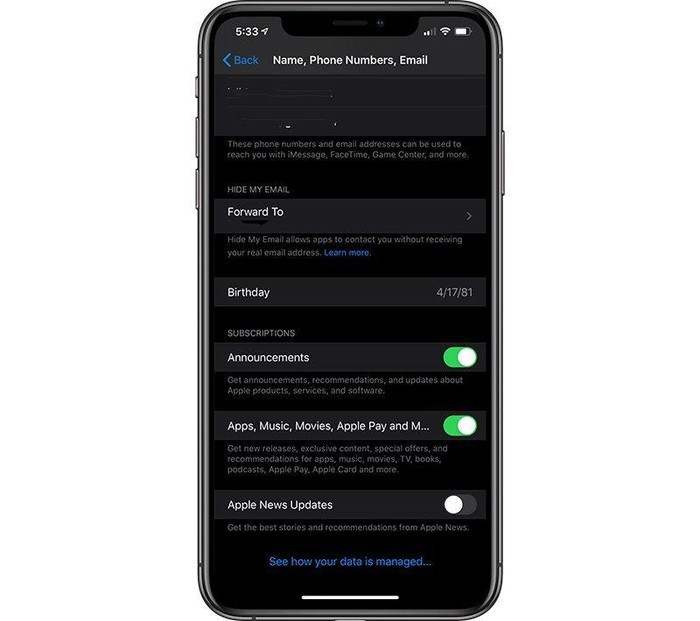 Khi dùng Sign in with Apple, bạn có thể cung cấp hoặc giấu địa chỉ email cá nhân với ứng dụng hay website. Bằng cách này, bạn tránh nhận được email không mong muốn tới hòm thư của mình.