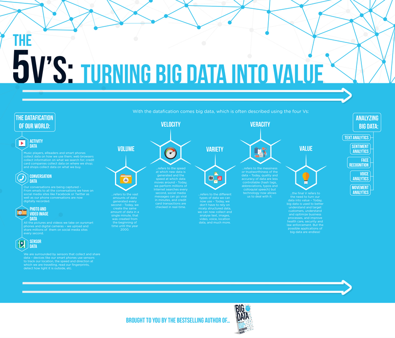 Dữ liệu mang đặc trưng phi truyền thống. Trong đó, chất lượng dữ liệu được quyết định bởi nguyên tắc 5“V”, bao gồm: Value - Giá trị, Velocity - Tốc độ, Volume - Số lượng, Veracity - Tính chính xác và Variety - Tính đa dạng. Xử lý dữ liệu lớn (Big Data) cần thực hiện qua nhiều tiến trình và trí tuệ nhân tạo chỉ đảm đương giai đoạn cuối. Vì vậy, AI hướng dữ liệu không chỉ phụ thuộc vào số lượng mà còn cần rất nhiều ở chất lượng dữ liệu.