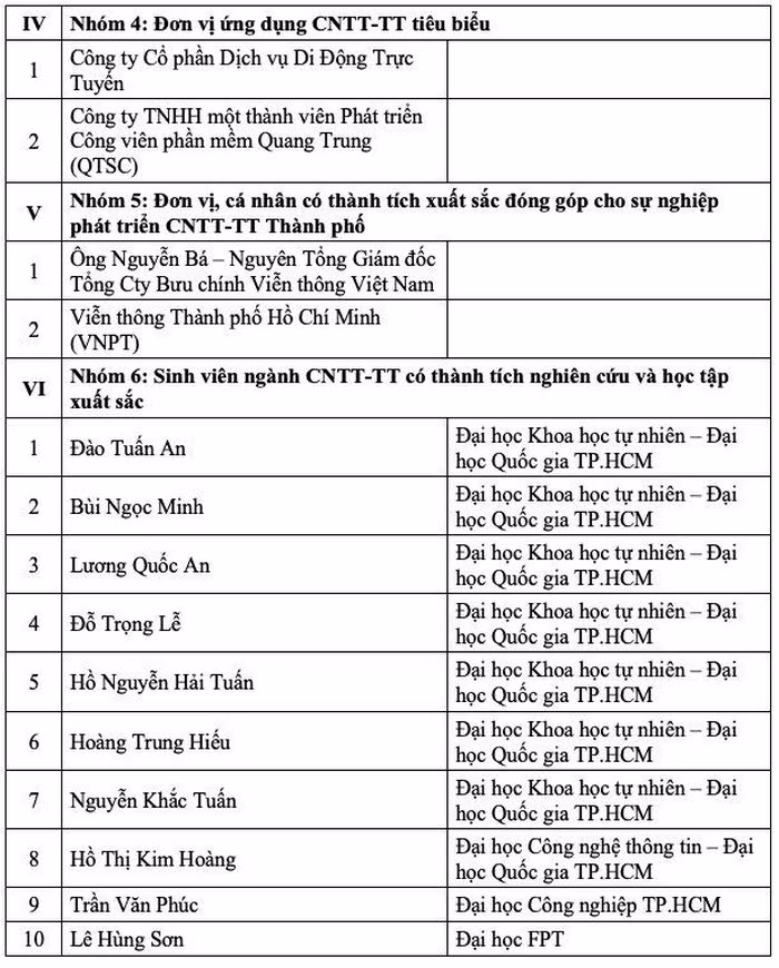 Các doanh nghiệp, cá nhân được Giải thưởng CNTT-TT TP.HCM 2018.