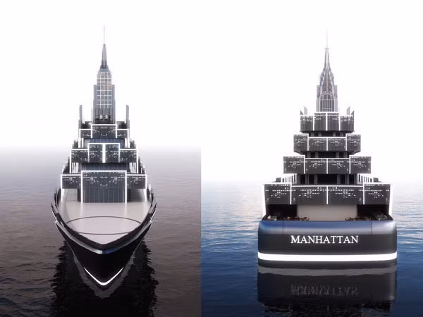 | Chiếc tàu du lịch với thân trên hình tháp tháp Mahattan- một thiết kế độc đáo của Vasily Klyukin. |
