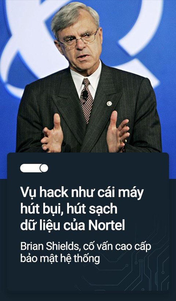 Brian Shields, cố vấn cao cấp bảo mật hệ thống và là thành viên của nhóm năm người điều tra sự cố lần đó so sánh "vụ hack như những cái máy hút bụi hút sạch dữ liệu của Nortel".