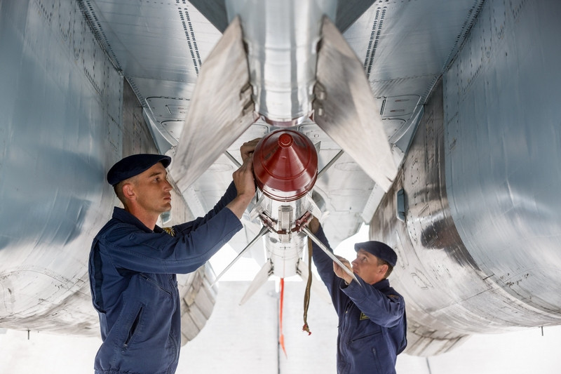 Các kỹ thuật viên đang bàn luận một điều gì đó bên chiếc Su-30SM, với họ đây không phải là một chiếc tiêm kích đầy uy lực mà đơn thuần chỉ là một con thú cưng sắt thép rất dễ thương.