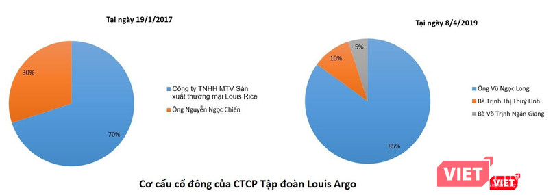 Tới tháng 4/2019, vợ chồng ông Vũ Ngọc Long – bà Trịnh Thị Thuý Linh nắm giữ tới 95% vốn điều lệ của Louis Argo.