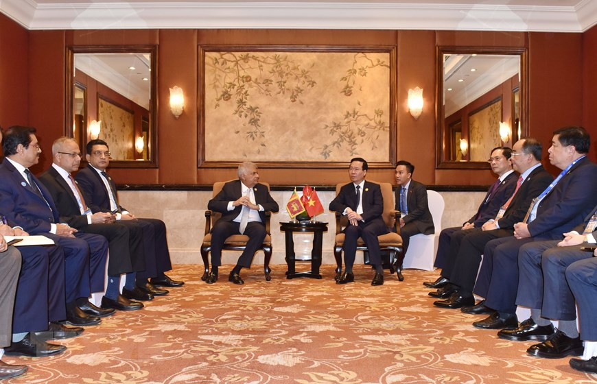 Chủ tịch nước Võ Văn Thưởng gặp Tổng thống Sri Lanka Ranil Wickremesinghe. (Ảnh: Tiến Trung/TTXVN)