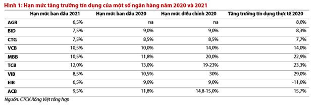 Hiện nay, NHNN vẫn chưa có thông tin điều chỉnh hạn mức tăng trưởng mới cho các ngân hàng. Năm trước, Vietcombank được cấp tín dụng 10% lần một, tuy nhiên đến cuối năm NHNN nâng "room" lên 14%. Một số ngân hàng ngân hàng khác cũng được nâng chỉ tiêu như MB, Techcombank, TPBank...