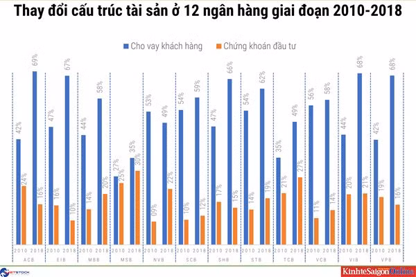 Ở giai đoạn 2010, đa phần các ngân hàng đều bùng nổ hoạt động đầu tư, kinh doanh nguồn vốn thay vì tập trung cho vay đơn thuần. Nhiều ngân hàng có tỷ trọng hoạt động chứng khoán kinh doanh, đầu tư rất cao như ACB hay Techcombank, MSB (trước đây là Maritimebank).