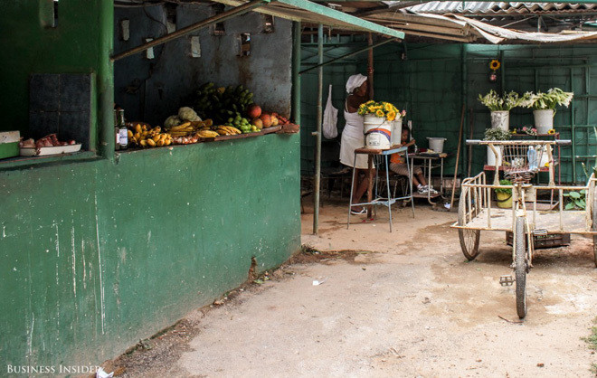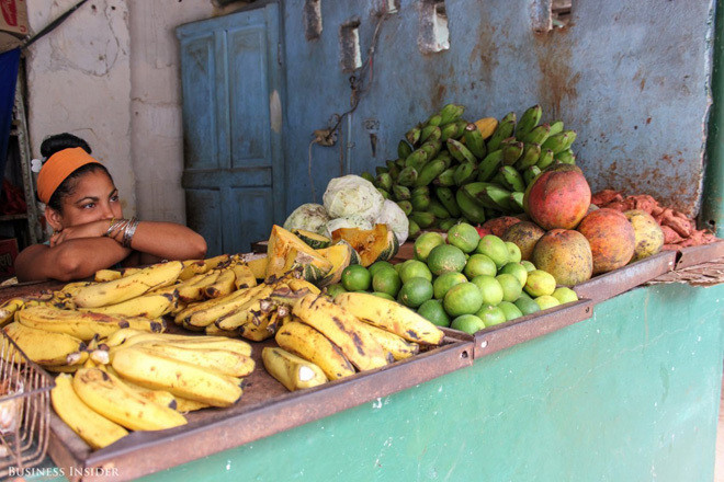 Dọc đường tới Centro Habana, một trong những khu nghèo nhất ở Havana, là chợ nông sản. Chợ vắng khách và hàng hóa cũng sơ sài.