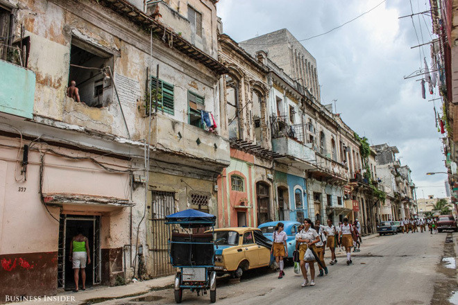 Cách điểm tham quan du lịch khá xa là cuộc sống ồn ào của khu dân nghèo Centro Habana. Dọc hai bên đường, những ngôi nhà tồi tàn nhuốm màu thời gian.