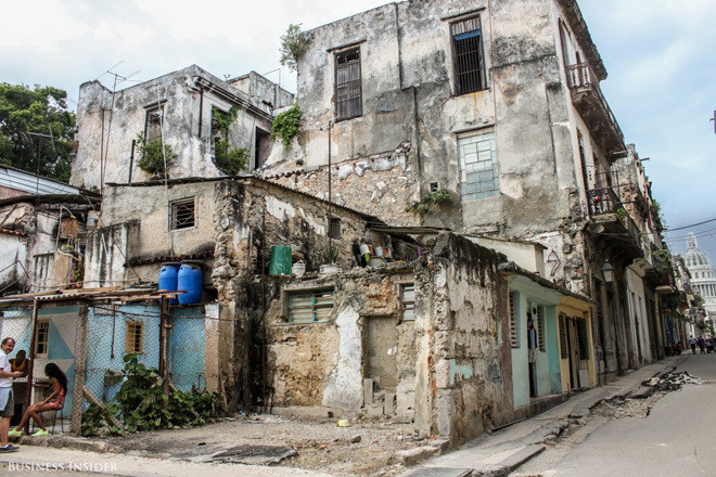 Các khu nhà ở Centro Habana xuống cấp nặng nhưng vẫn có người ở.