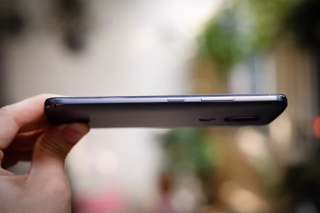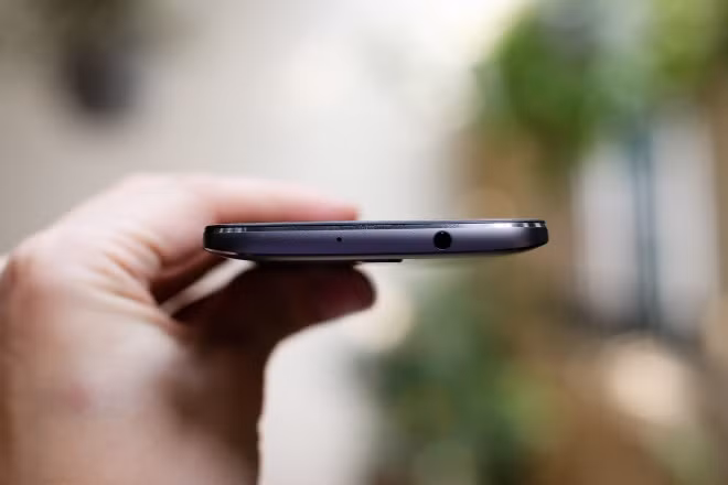 Thiết kế khiến nhìn từ hông trông điện thoại mỏng dù kích thước thực tế 7,9 mm. Cảm giác cầm máy hơi cấn tay, không thoải mái như Galaxy J7 Prime hay F1s 2017. Bù lại, Moto M có khả năng chống nước.