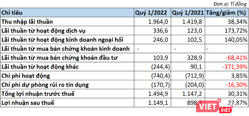 Ngân hàng TMCP Hàng Hải Việt Nam (Mã CK: MSB) vừa công bố kết quả kinh doanh quý 1/2022 với lợi nhuận trước thuế đạt 1.494,9 tỉ đồng, tăng 30,3% so với cùng kỳ năm trước, hoàn thành 22% kế hoạch năm. Lợi nhuận sau thuế đạt 1.149,1 tỉ đồng, tăng 28% so với cùng kỳ năm 2021.