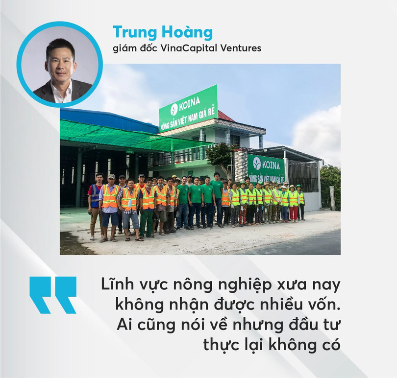 “Lĩnh vực khởi nghiệp nông nghiệp xưa nay không nhận được nhiều vốn”, ông Trung Hoàng nói. “Ai cũng ra rả nói về, nhưng đầu tư thực lại không có”.