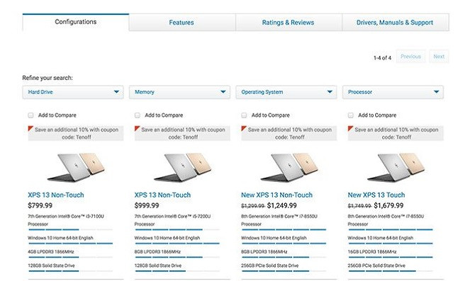 Không chỉ Microsoft mà nhiều nhà sản xuất khác cũng làm nổi bật giá bán khởi điểm rất hấp dẫn cho phiên bản thấp nhất của một dòng máy nào đó. Dell XPS 13 có giá từ 799 USD (18,1 triệu đồng) nhưng chỉ với CPU Core i3, RAM 4GB và SSD 128GB. Nếu muốn có CPU nhanh hơn, RAM và SSD nhiều hơn cho nhu cầu cần thiết thì bạn phải bỏ ra số tiền nhiều hơn 56% để mua về phiên bản có giá 1.249 USD (28,3 triệu đồng).