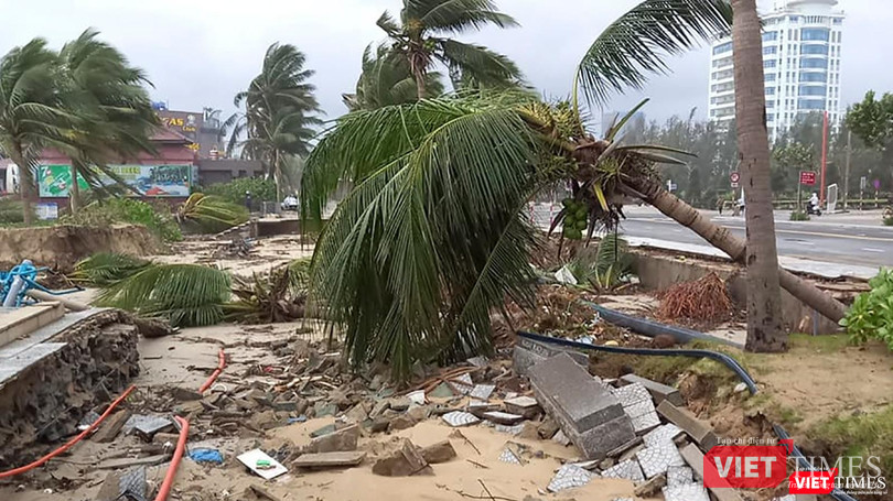 | Rừng dừa ven biển du lịch khu vực quận Ngũ Hành Sơn bị nước cuốn trốc gốc |
