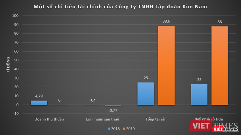 Tại ngày 31/12/2019, quy mô tổng tài sản của Kim Nam Group đạt 88,6 tỉ đồng, vốn chủ sở hữu ở mức 88,1 tỉ đồng.
