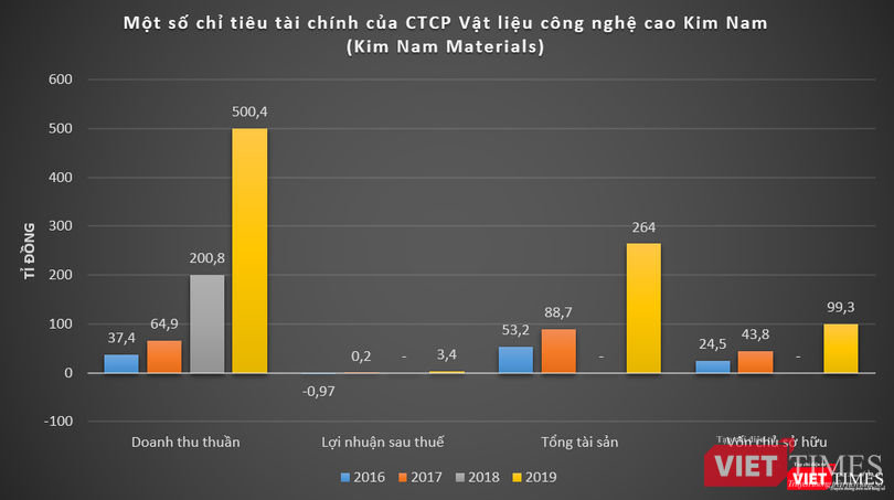Dữ liệu của VietTimes cho thấy, trong giai đoạn 2016 - 2019, doanh thu của Kim Nam Materials (công ty mẹ) tăng trưởng khá ấn tượng.