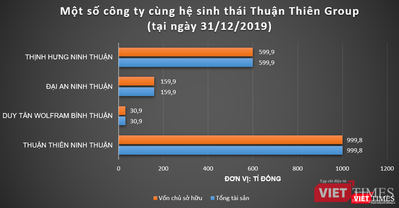 Ba năm kể từ ngày được "khai sinh", Thuận Thiên Ninh Thuận không phát sinh doanh thu. Lỗ ròng không đáng kể, chỉ hơn trăm triệu đồng. Bởi thế nên đến cuối năm 2019, tổng tài sản và vốn chủ sở hữu của công ty này vẫn xấp xỉ gần 1.000 tỉ đồng.