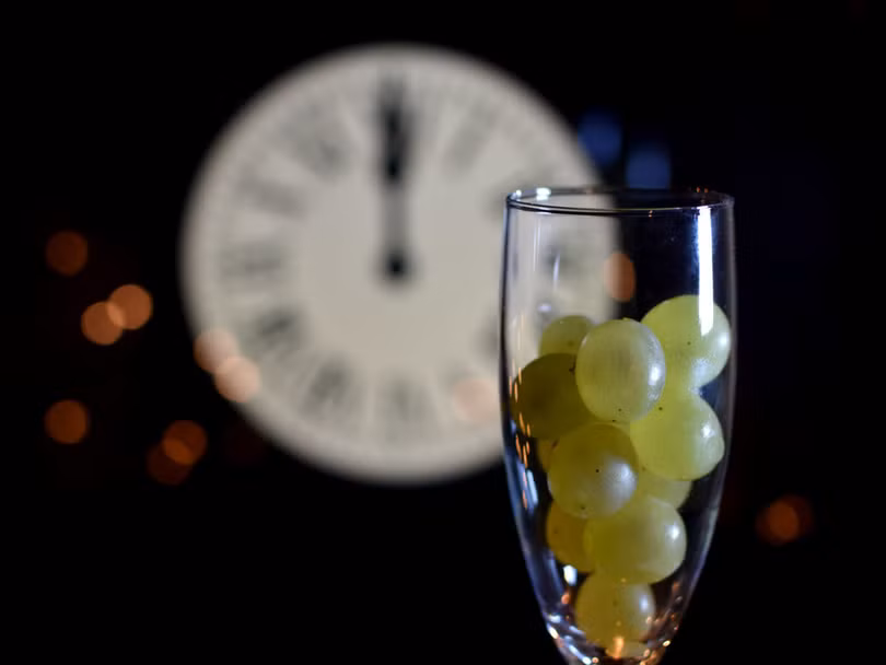 Vào nửa đêm, mỗi người Tây Ban Nha sẽ ăn 12 trái nho – mỗi giây một quả sau khoảng khắc giao thừa để có được sự may mắn trong năm mới. Mỗi quả nho tượng trưng cho một tháng trong năm và phải ăn ngay lúc nửa đêm. Nếu bạn không ăn tất cả 12 quả nho, thì nó được coi là điềm xấu.
