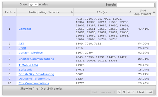 Với sự cạn kiệt không gian địa chỉ IPv4 (chỉ có 32 bit cho mỗi địa chỉ) từ năm 2011, không gian địa chỉ IPv6 ra đời như một hệ quả thiết yếu, đáp ứng số lượng thiết bị ngày càng tăng nhanh chóng như hiện nay. Việc triển khai, sử dụng IPv6 đã và đang được phát triển nhanh chóng trên toàn thế giới. Theo báo cáo mới nhất của World IPv6 Launch, hiện nay có khoảng 240 nhà mạng trên thế giới tham gia thử nghiệm và triển khai chuyển đổi sang IPv6. Trong đó, danh sách 10 nhà mạng được đánh giá cao nhất được thể hiện như trong dưới đây:
