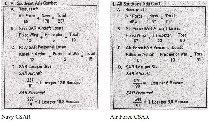 Sự tổn thất khủng khiếp số lượng phi công chiến đấu trong chiến tranh Việt Nam đã khiến các chuyên gia hàng không có một quan điểm mới trong công tác tìm kiếm và cứu hộ phi công trên biển lớn.