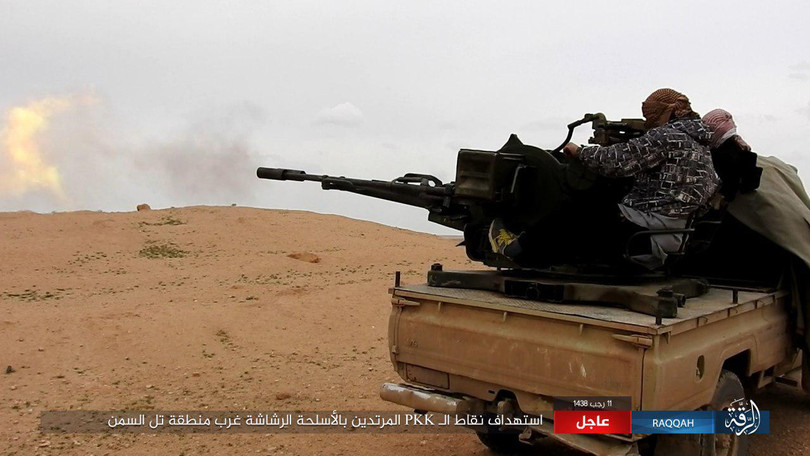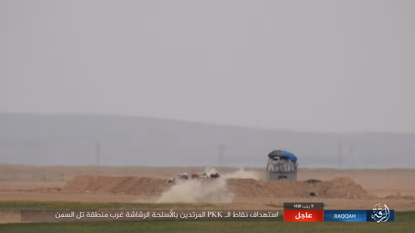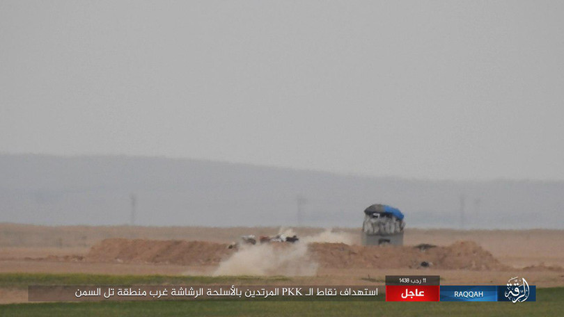 IS đã đưa 7 tay súng tấn công tự sát đánh vào các vị trí của SDF ở Inad và Al-Baghdah phía nam thị trấn Al-Shadadee, trang tin Amaq cho biết đã sát hại 41 chiến binh dân quân người Kurd. IS cũng tổ chức tấn công các vị trí của SDF ở núi Tal Al-Saman và làng Al-Qadisiah trên vùng nông thôn Raqqah. Trong cuộc tấn công IS tuyên bố phá hủy một xe BMP-1 của SDF.