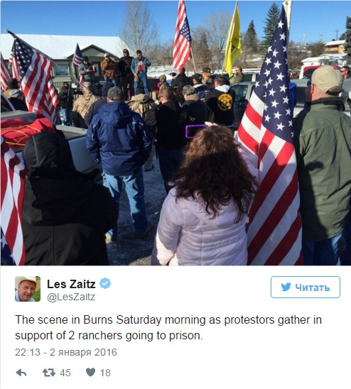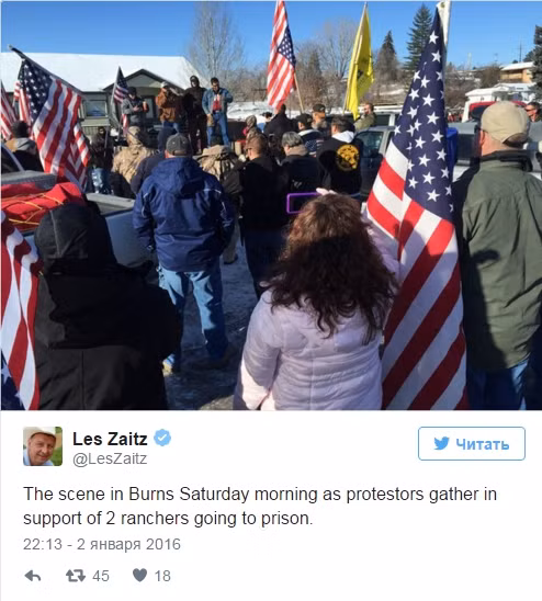 Những người biểu tình đòi hỏi chính quyền liên bang Mỹ thả hai nông dân, bị cáo buộc đã liên quan đến một vụ phóng hỏa trên đất công. Có khoảng 150 người dân vũ trang đã chiếm tòa nhà trụ sở của cơ quan quản lý phát triển rừng quốc gia Malur ở bang Oregon.