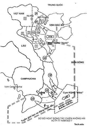 Nhiều tàu sân bay đã tiến vào vùng chiến sự bờ biển Việt Nam 5-7 lần. Tàu sân bay nguyên tử "Enterprise" từ năm 1965 đến năm 1972 đã 6 lần hành tiến sâu vào Vịnh Bắc bộ, tiến hành 39 nghìn đợt không kích vào Việt Nam, ném hơn 30 nghìn tấn bom đạn và rải 400 quả thủy lôi.