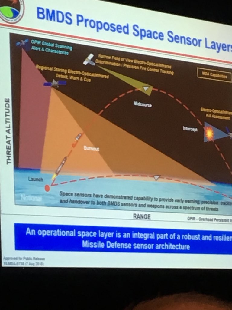 Từ quan điểm chiến lược, các quan chức cao cấp của quân đội Mỹ như Michael Griffin, thứ trưởng Quốc phòng phụ trách vấn đển Nghiên cứu và Kỹ thuật, Tướng không quân John Hyten, tổng tham mưu trưởng Bộ Tư lệnh Chiến lược Mỹ là những người ủng hộ mạnh mẽ tiến trình mở rộng và phát triển hệ thống cảm biến dạng mạng trên không gian và triển khai các hệ thống phòng thủ tên lửa trên không gian. Tướng Hyten đặc biệt quan tâm đến việc phát triển các cảm biến không gian có thể phát hiện và giám sát vũ khí siêu âm. Nguyên nhân này bắt nguồn từ việc các đối thủ chính là Nga và Trung Quốc đang chế tạo thành công các loại phương tiện bay siêu âm có khả năng mang đầu đạn hạt nhân.