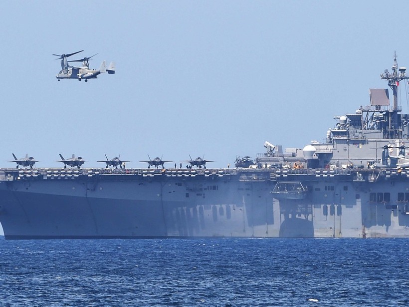 Máy bay tàng hình F-35B trên tàu sân bay USS Wasp tham gia cuộc diễn tập