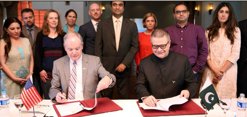 CEO chi nhánh USAID ở Nam Á trong lễ ký thỏa thuận hỗ trợ cho Pakistan